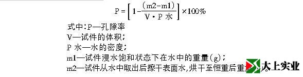 (2)孔隙率。對于硬化后透水混凝土的孔隙率假定連通孔隙體積占絕大多數。因此我們采用靜水力學方法進行測定。將試件在水中浸泡24h后,在水中測試試件的質量m1;然后將試塊烘干至恒重后重量,測其質量m2;根據公式計算計算混凝土孔隙率P:
