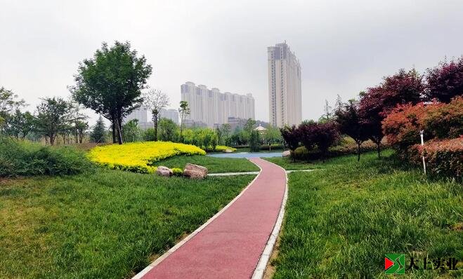 安陽高新開發(fā)區(qū)新建一個社區(qū)公園,透水混凝土園路很特別